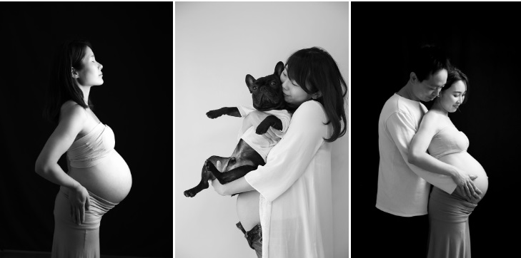 家族写真と同様、ひとつひとつのご家族、おひとりひとりのご要望に合わせて撮影します。上のお子さんやご家族、ペットと一緒に撮りたい場合は自然な写真を多めに、妊婦さんおひとりやご夫婦のみで撮影される場合は、衣装や背景を替えながら丁寧に撮影します。
